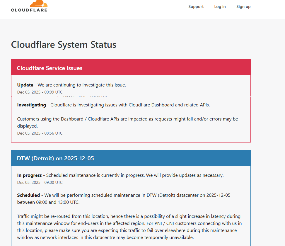 On 5 December 2025, Cloudflare reported a global service issue affecting its Dashboard, APIs, and network performance. Because Shopify relies heavily on Cloudflare’s edge network for security, CDN delivery, and traffic routing, this outage created noticeable issues for Shopify merchants worldwide.